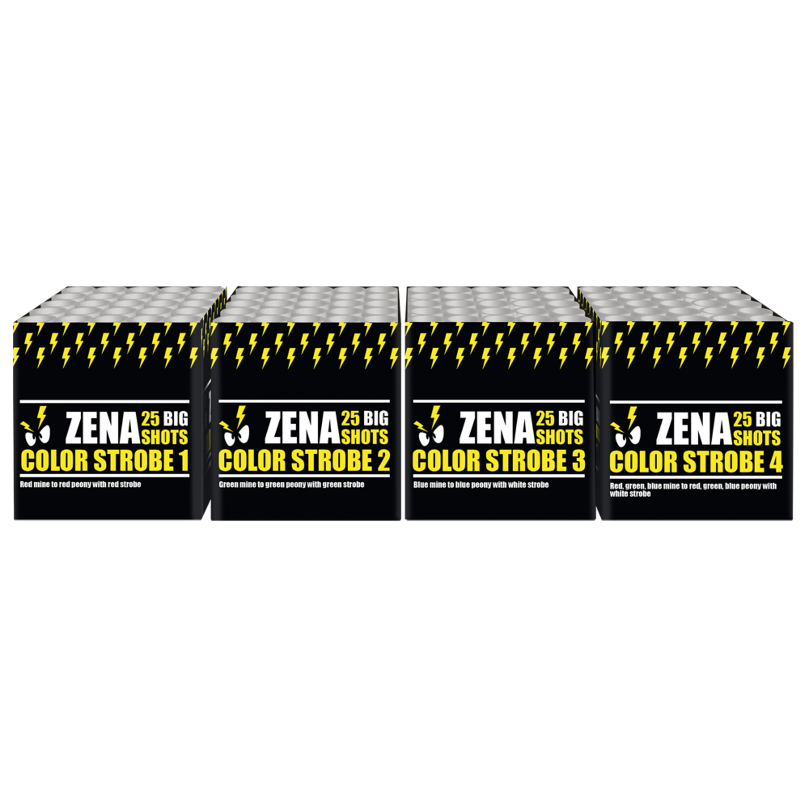 4 kraftvolle 25-Schuss-Cakes in einer Serie, zusammengestellt von den echten Zena-Profis.